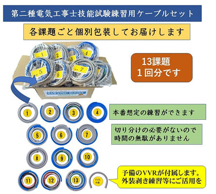 練習用電線を課題ごとに仕分けしたセットを、講習に参加された方に格安で販売いたします。